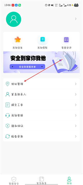 2、在我的頁面,點擊地址管理選項,進(jìn)入該界面。