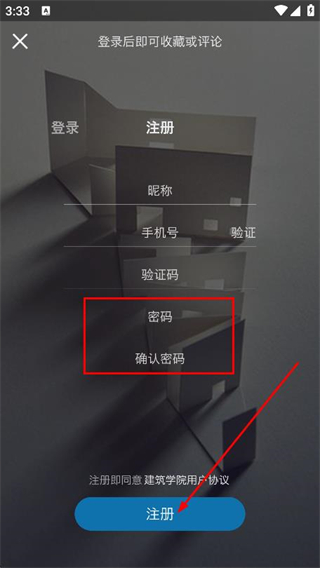 4、設(shè)置密碼并再次輸入密碼確認(rèn),點(diǎn)擊注冊即可完成注冊。