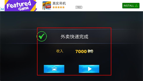 4、完成外賣配送任務(wù)后,獲取對應(yīng)的收入獎勵,可選擇對應(yīng)按鈕繼續(xù)接單。
