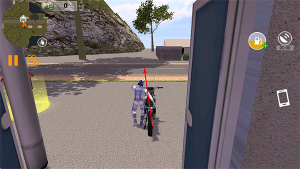 1、在游戲主界面點擊開始游戲選項,進(jìn)入包含摩托車角色的快遞配送場景。