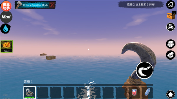 5、最后來到游戲中,在無垠的海面上展開自己的冒險,通過手中的鉤子收集有用的物資生成下去。