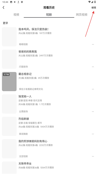 3、進(jìn)入觀看歷史頁面內(nèi),點(diǎn)擊右上方編輯的按鈕。