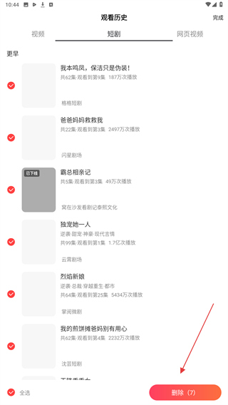 4、勾選需要刪除的視頻后,點(diǎn)擊刪除的按鈕即可。