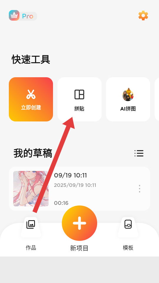 1、打開微剪輯APP,需要點(diǎn)擊拼貼,進(jìn)入照片選擇的界面。