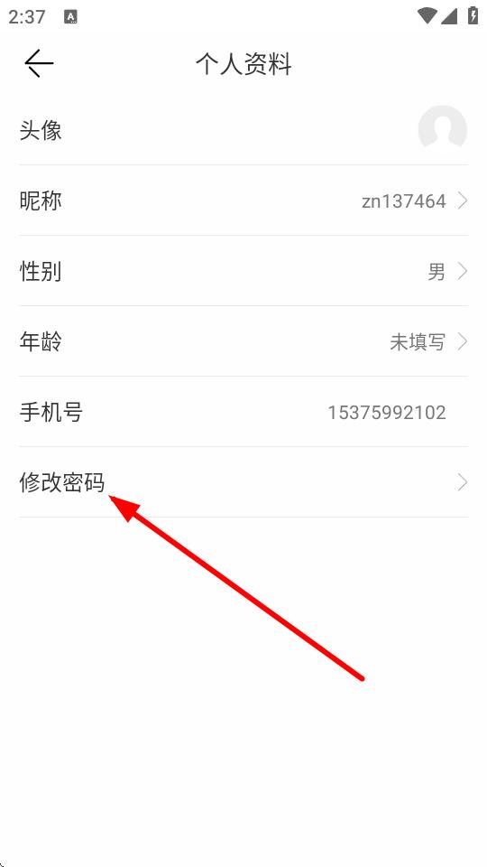 3、在個(gè)人資料頁面里,找到并點(diǎn)擊修改密碼選項(xiàng)。