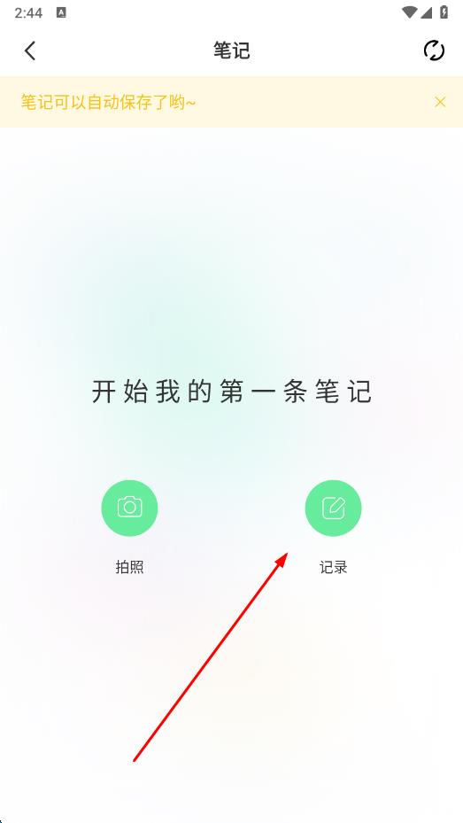 2、進入筆記頁面后,點擊記錄按鈕,開始創(chuàng)建新筆記。