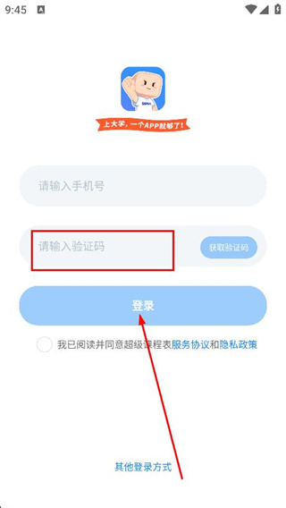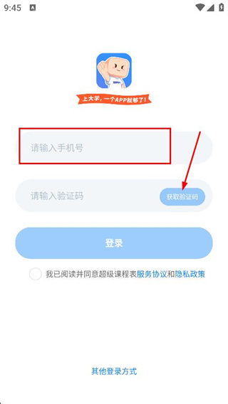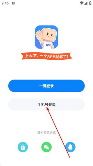 1、打開超級課程表app,找到并點擊下方的手機號登錄選項。