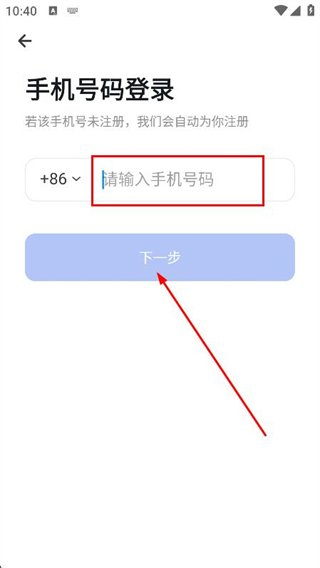 2、在手機(jī)號(hào)登錄頁(yè)面,輸入手機(jī)號(hào)點(diǎn)擊下一步。