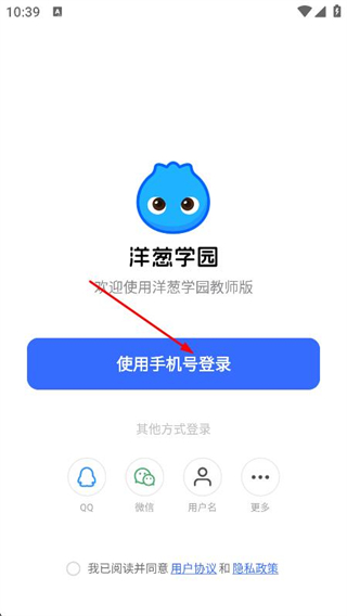 1、打開洋蔥學(xué)園教師版,點(diǎn)擊使用手機(jī)號(hào)登錄。