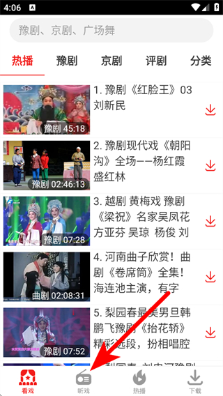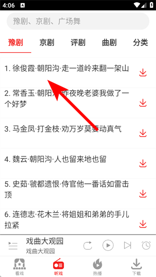 2、在聽?wèi)蝽撨x擇豫劇或京劇等曲目,進(jìn)入曲目列表的界面。