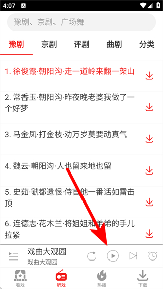 3、點(diǎn)擊底部播放按鈕,開始播放所選戲曲,完成聽?wèi)虿僮鳌?
