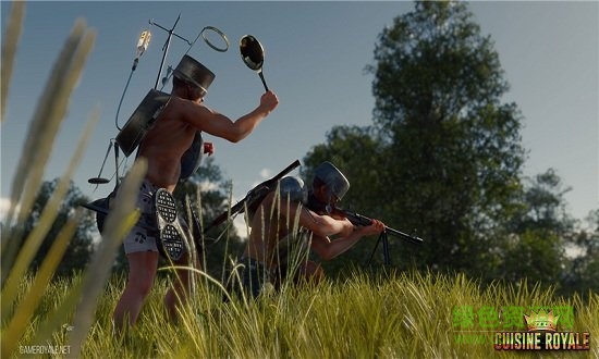 1.隨處可見烹飪?yōu)橹黝}吃雞風(fēng)格,30名玩家穿著短褲開始戰(zhàn)斗;