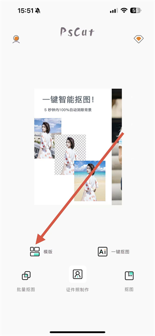 1、打開PsCut應(yīng)用,點擊模版選項進(jìn)入模版選擇界面。