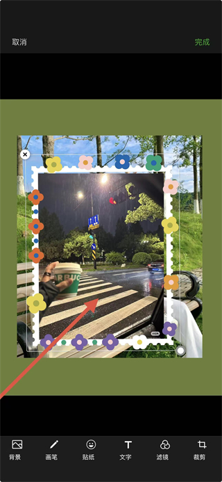 4、圖片導(dǎo)入后,可在編輯界面對圖片進(jìn)行調(diào)整,完成后點擊右上角的完成按鈕,即可生成應(yīng)用模版后的摳圖效果圖片。