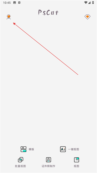 1、打開Ps摳圖APP,點擊左上角個人圖標(biāo)。