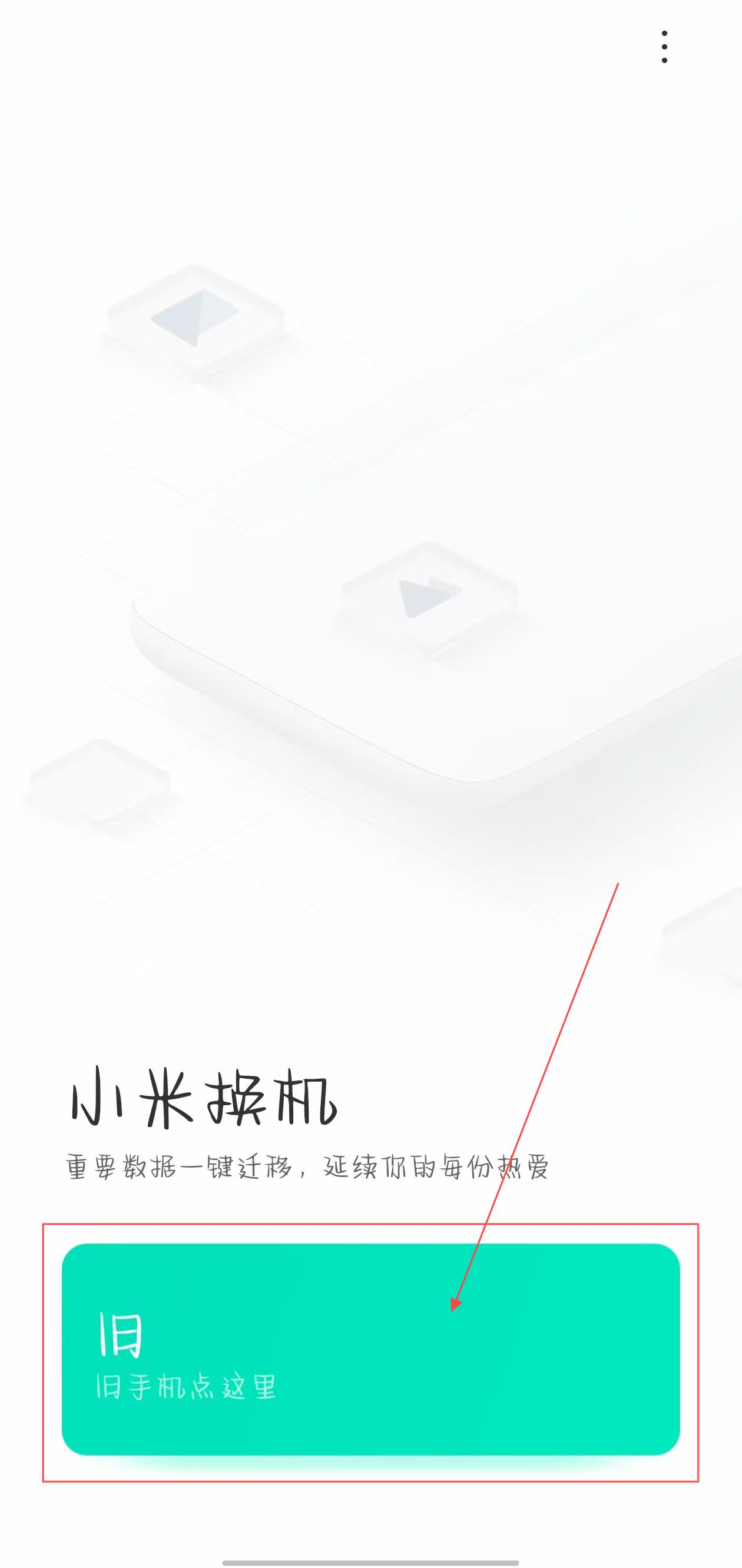 1、打開小米換機(jī)應(yīng)用,在主界面,若你是舊手機(jī)操作 ,點(diǎn)擊舊手機(jī)點(diǎn)這里按鈕,進(jìn)入數(shù)據(jù)遷移選擇頁面 。