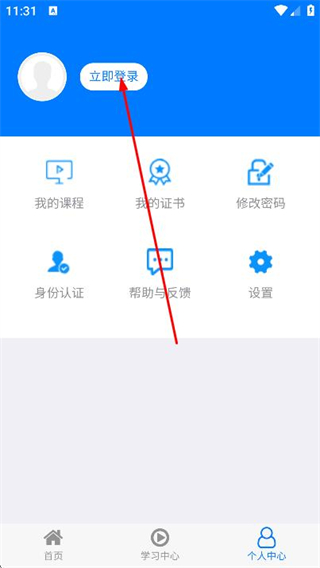 2、在個人中心頁面,點擊頭像旁邊的立即登錄按鈕。