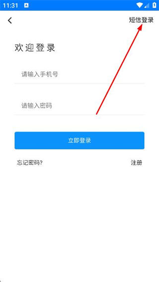 3、在登錄頁面,找到并點擊右上角的短信登錄選項。