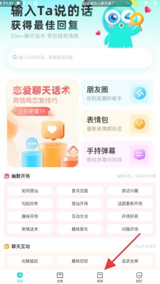 1、打開章魚輸入法APP,在底部那一欄找到商場的圖標并進行點擊。