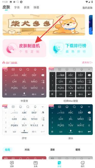 2、進入商場后直接跳轉(zhuǎn)到皮膚的頁面,在下方找到皮膚制造機即可開始。