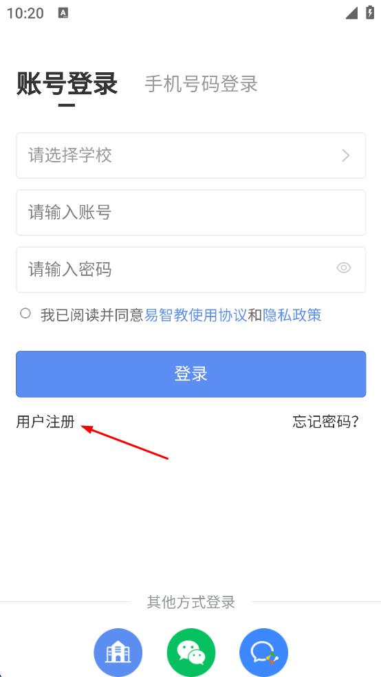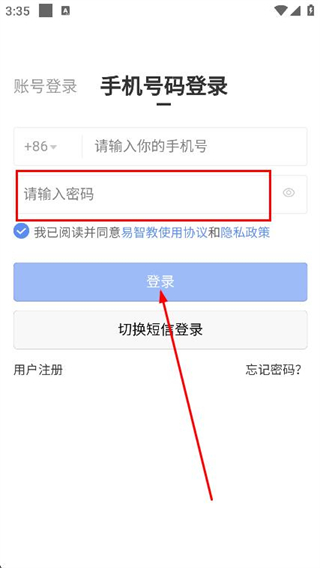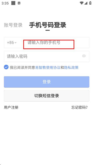 1、打開易智教云課堂app,點擊手機號碼登錄選項。