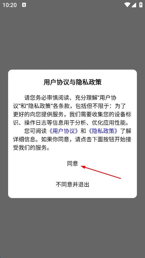 1、打開易智教應(yīng)用,彈出“用戶協(xié)議與隱私政策”說明框,認(rèn)真閱讀后點擊“同意”,進(jìn)入到應(yīng)用介紹頁面。