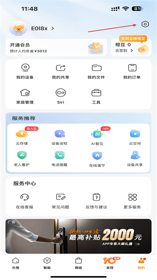 1、啟動樂橙監(jiān)控的APP,在首頁右下角我的圖標。
