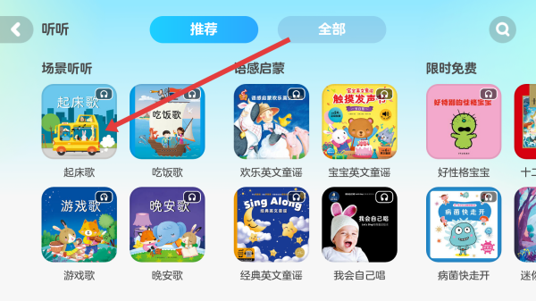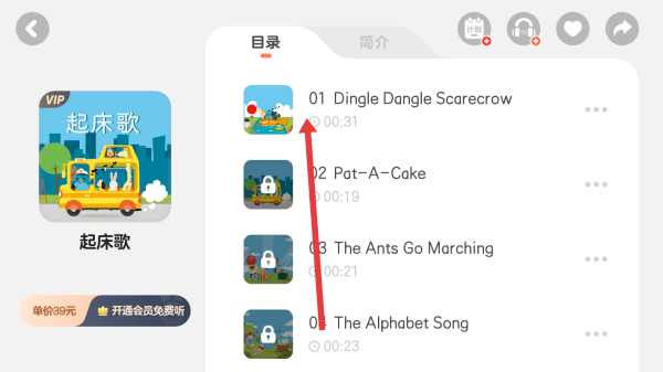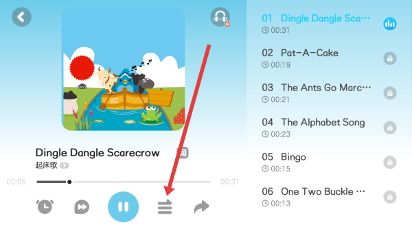 2、在進(jìn)入到起床歌頁面中,可以點(diǎn)擊右側(cè)列表第一個(gè)歌曲,進(jìn)入播放。