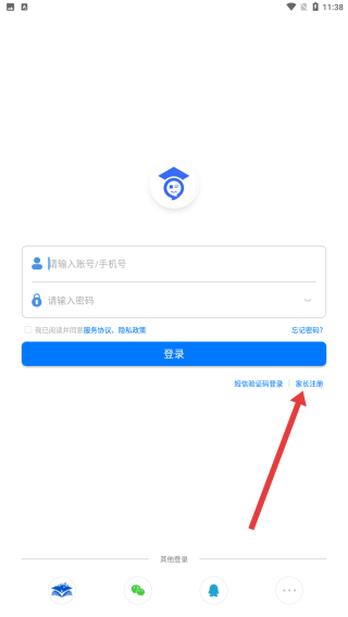 2、在登錄界面,點(diǎn)擊家長(zhǎng)注冊(cè)按鈕,跳轉(zhuǎn)至查找班級(jí)頁(yè)面,開啟家長(zhǎng)賬號(hào)注冊(cè)流程。