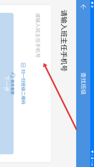 3、進(jìn)入查找班級(jí)頁(yè)面,在輸入框填寫班主任手機(jī)號(hào),也可掃碼或聯(lián)系客服,逐步完成注冊(cè)賬號(hào)流程。