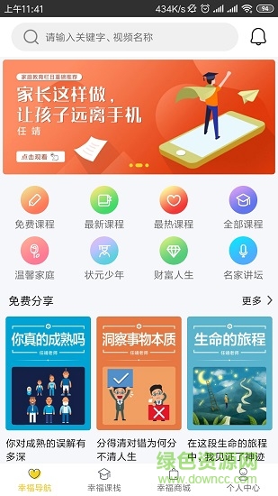 幸福課棧app手機(jī)版是一款老百姓買(mǎi)得起,一天僅需一塊錢(qián),用的著,隨時(shí)隨地可以學(xué)習(xí)的家庭教育必需品。當(dāng)今社會(huì)物質(zhì)已經(jīng)完全能滿(mǎn)足人們的需求,人們開(kāi)始關(guān)注精神世界,幸福成了大家所關(guān)心的家常問(wèn)題。通過(guò)幸福課棧,讓心靈成長(zhǎng),讓智慧升華,讓家庭幸福。APP采用線(xiàn)上、線(xiàn)下相結(jié)合教育方式,以視頻、音頻、圖文和互聯(lián)網(wǎng)深度融合的新模式,打造K12·云題·云課。
