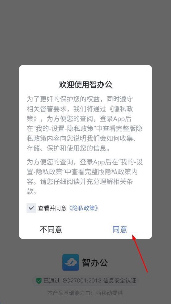 1、打開智辦公,在彈出的歡迎使用智辦公頁面,點(diǎn)擊同意,進(jìn)入云文檔介紹頁面。