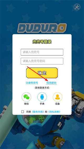 1、打開兜兜龍同步學,在登錄頁面點擊找回密碼。