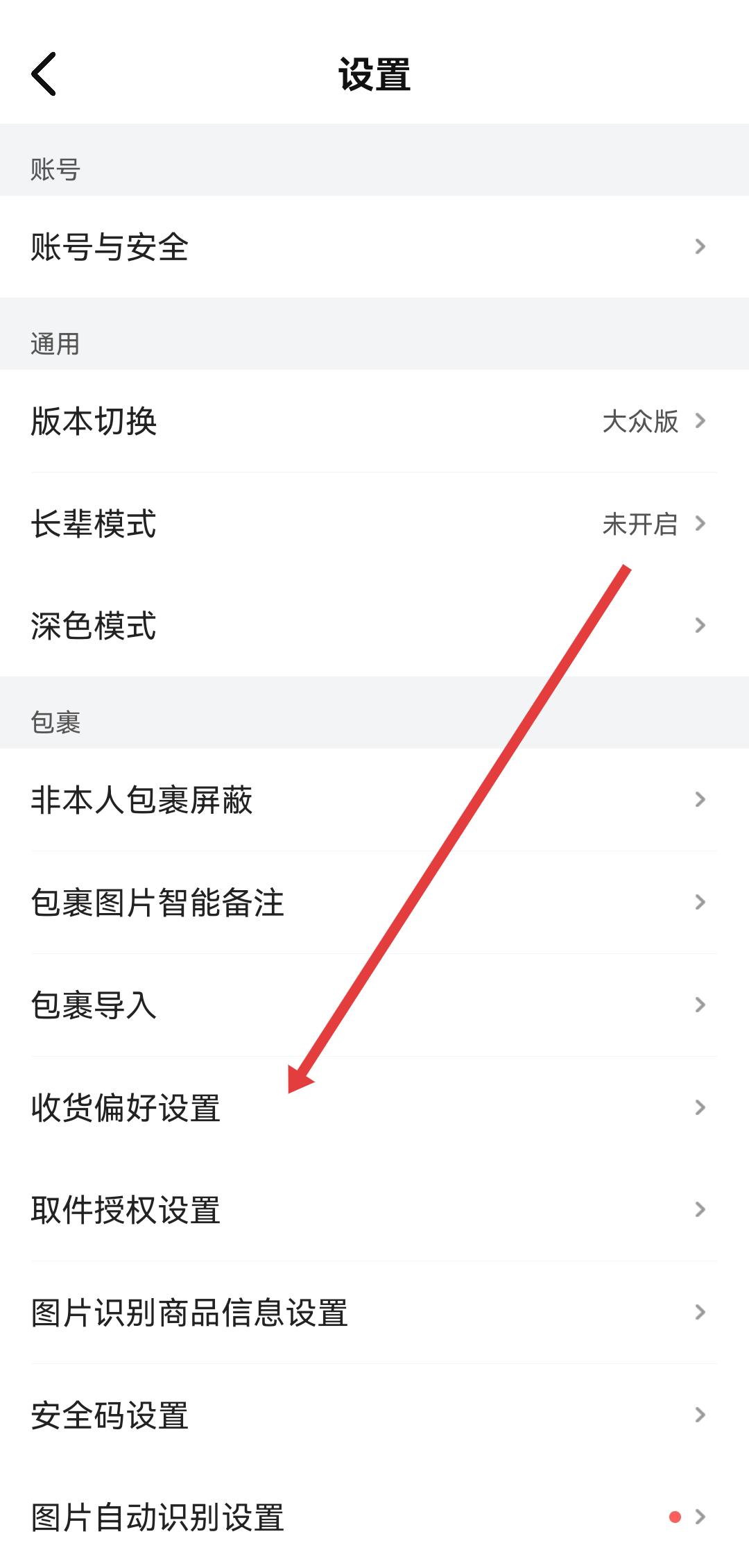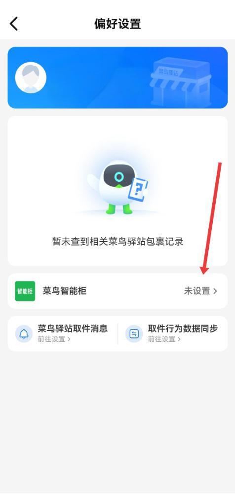 2、找到并且點擊收貨偏好設置的選項后,我們需要再次點擊下方的菜鳥智能柜旁邊顯示的未設置按鈕。