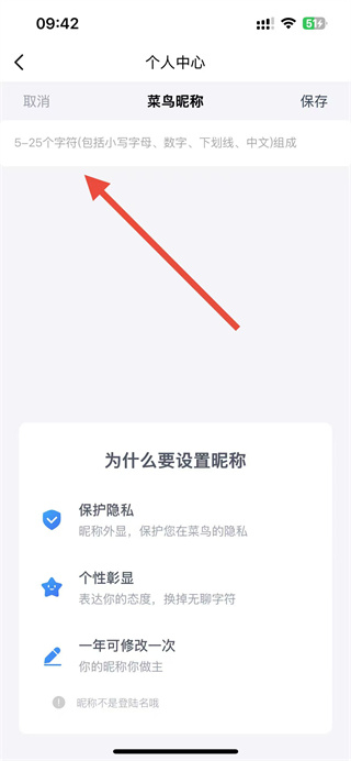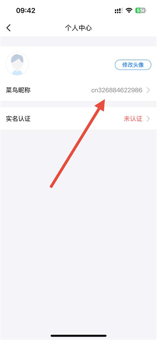 3、在個人中心頁面點擊菜鳥昵稱選項,進入昵稱編輯頁面。