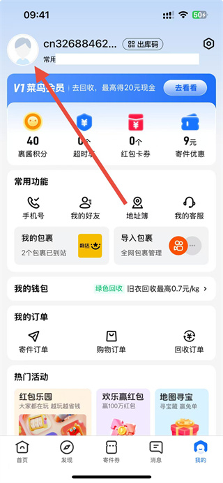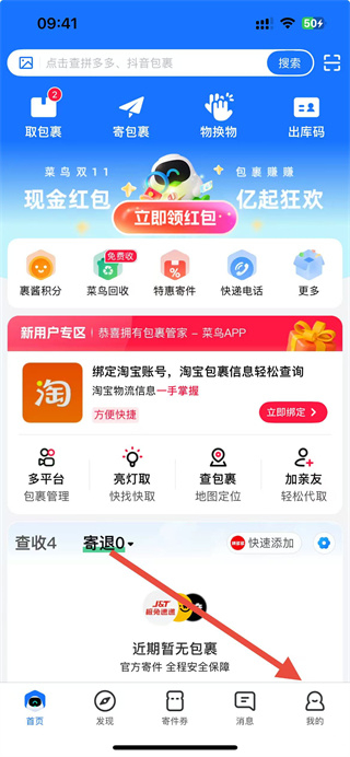 1、在菜鳥app首頁點擊我的選項,進入個人頁面。