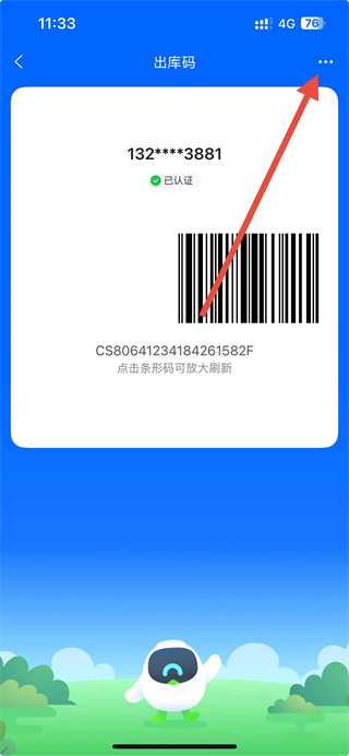 2、在出庫碼頁面,點擊右上角三點圖標展開菜單。