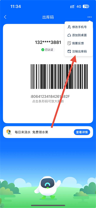 3、在菜單選項列表中,點擊注銷出庫碼選項。