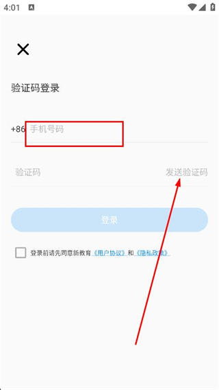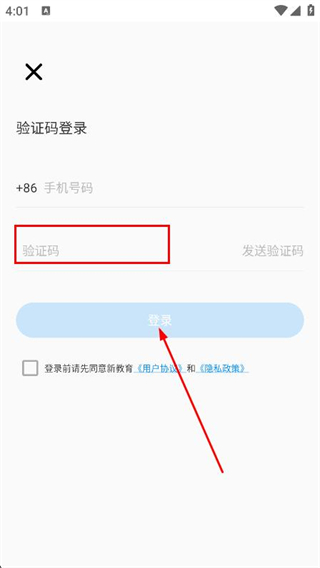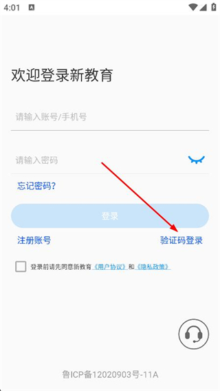 1、打開新教育學(xué)生端,點擊驗證碼登錄選項。