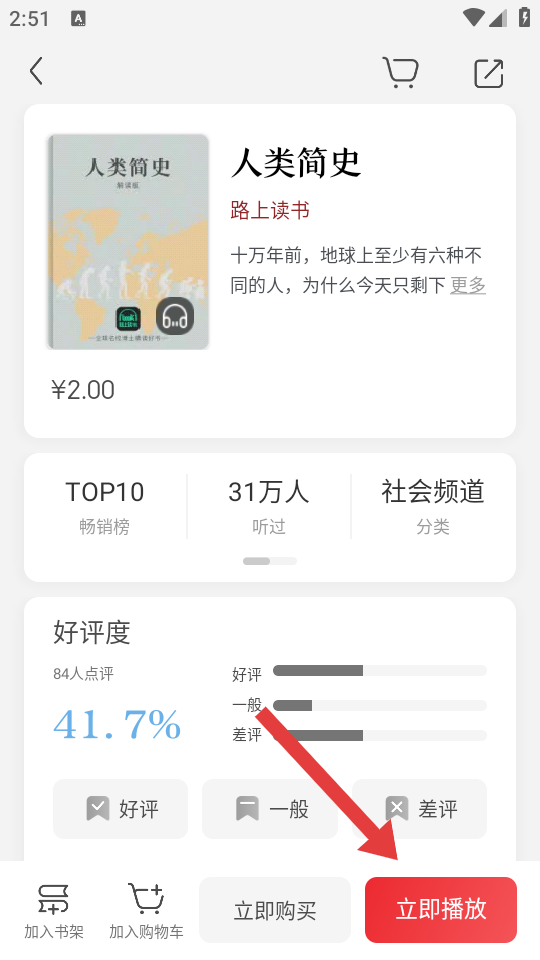 2、在這本書籍的詳情頁,點擊立即播放的按鈕,進(jìn)入聽書播放的界面。