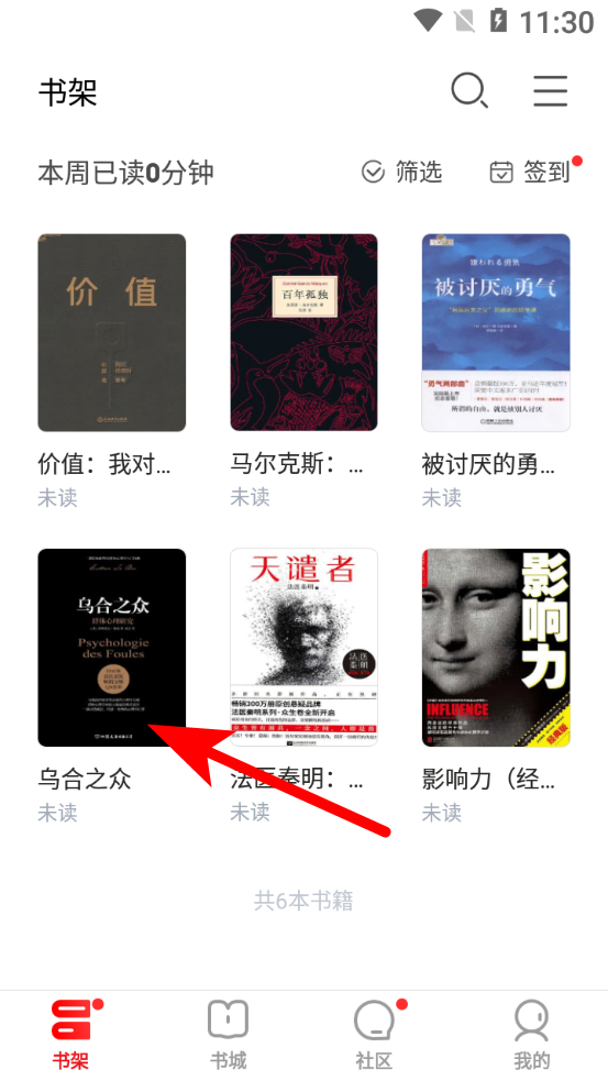 1、在京東讀書書架頁面,點擊想要閱讀的書籍封面,進(jìn)入書籍閱讀界面。