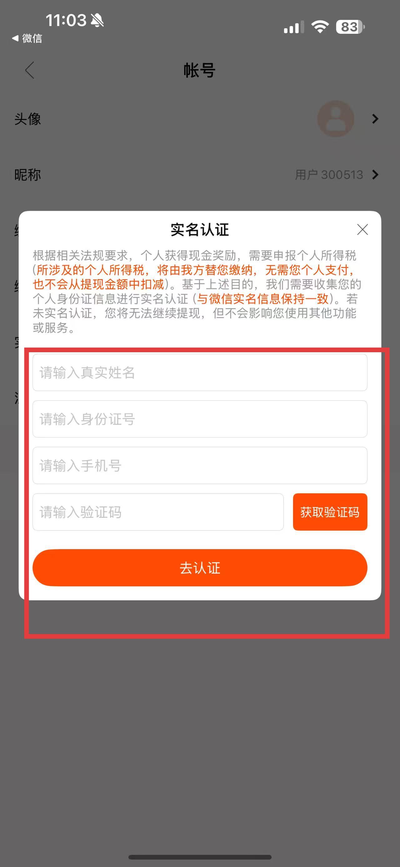 4、依次輸入真實(shí)姓名、身份證號、手機(jī)號,點(diǎn)擊獲取驗(yàn)證碼并填入收到的驗(yàn)證碼,最后點(diǎn)擊去認(rèn)證,完成實(shí)名認(rèn)證。