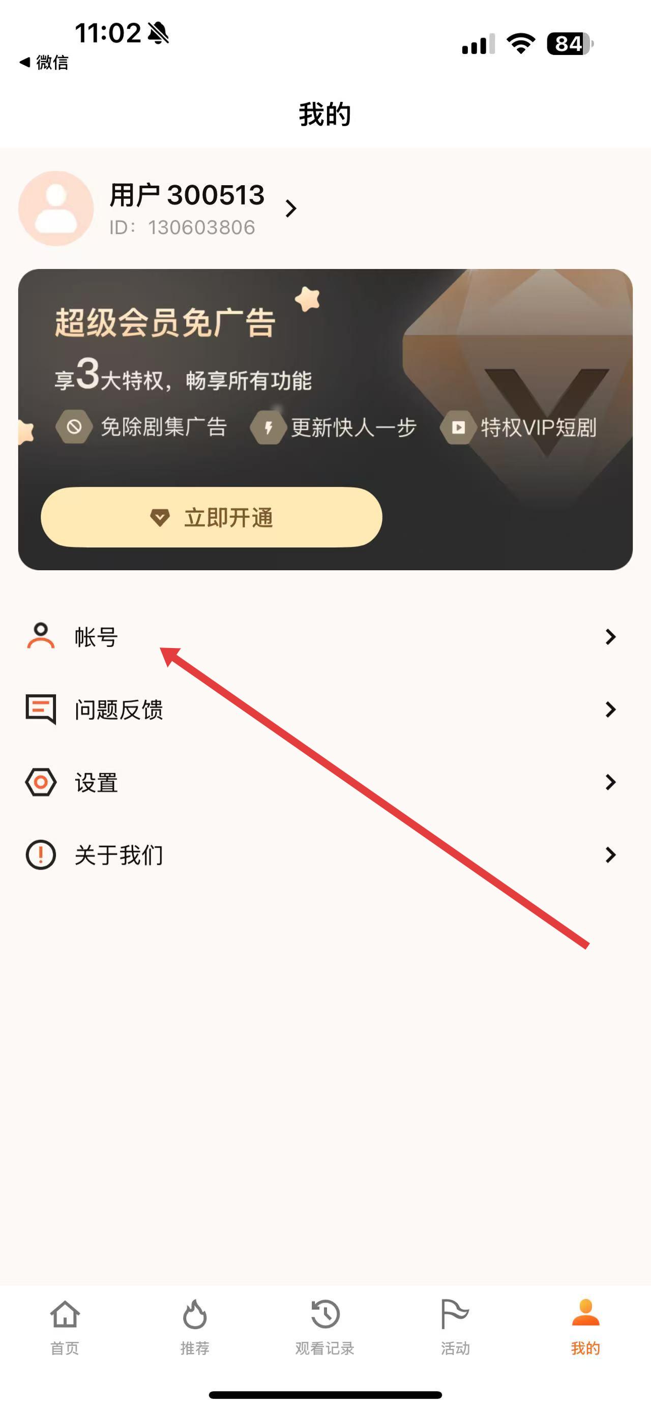 2、在個(gè)人頁面中,點(diǎn)擊帳號選項(xiàng),進(jìn)入帳號設(shè)置界面。