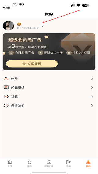 2、進(jìn)入我的頁面內(nèi),點(diǎn)擊上方用戶昵稱的區(qū)域位置。