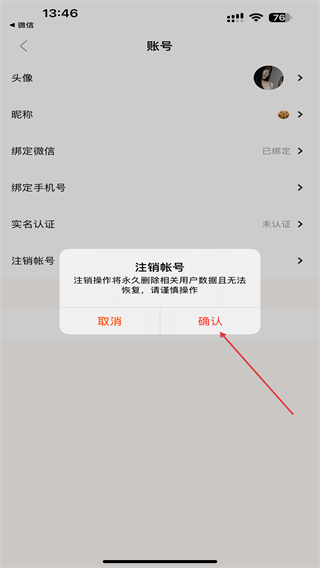 4、當(dāng)界面彈出注銷提示后,點(diǎn)擊確認(rèn)的按鈕即可成功。