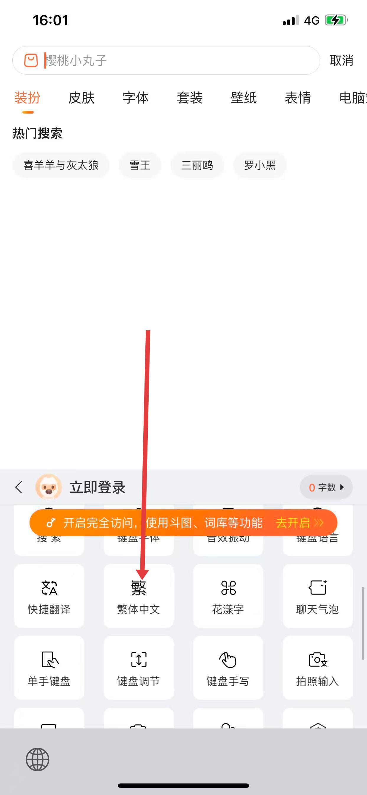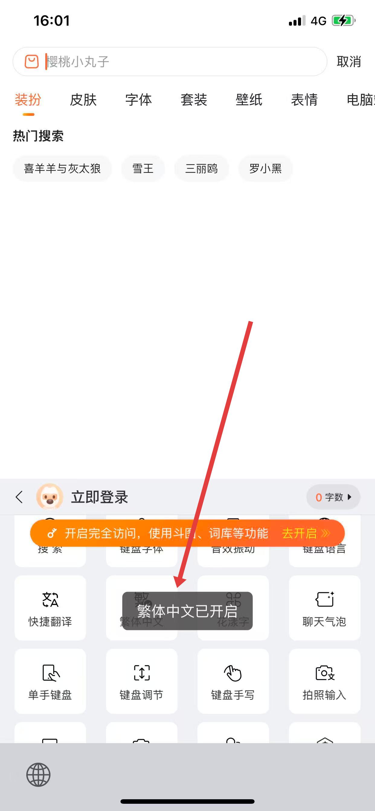 3、點(diǎn)擊繁體選項(xiàng),開啟后輸入文字即默認(rèn)以繁體字顯示。