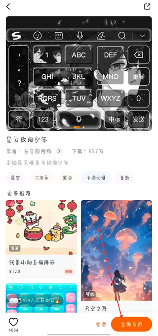 4、點(diǎn)擊立即啟用后,等待片刻讓系統(tǒng)完成皮膚切換,切換完成后,在使用搜狗輸入法輸入時(shí),就能看到免費(fèi)皮膚效果。