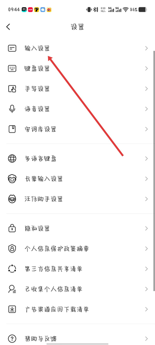 2、在設(shè)置頁面,點(diǎn)擊輸入設(shè)置選項(xiàng)。