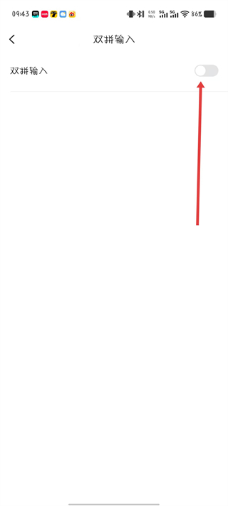 4、在雙拼輸入頁面,點(diǎn)擊雙拼輸入的開關(guān)。