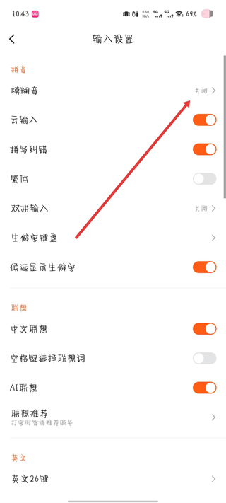 3、找到模糊音選項(xiàng)并點(diǎn)擊,進(jìn)入模糊音的具體設(shè)置頁面。